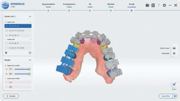 間接的な接着トレイを設計し、矯正医によるブラケットの迅速かつ正確な装着をサポート